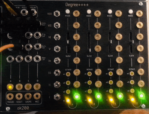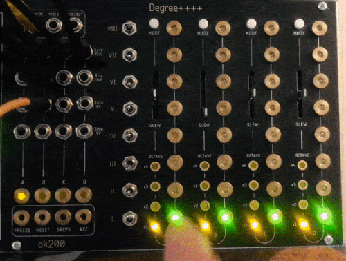 The DEGREE contains a series of 8 scale degree switches which can be used to construct a common scale between all 4 channels.